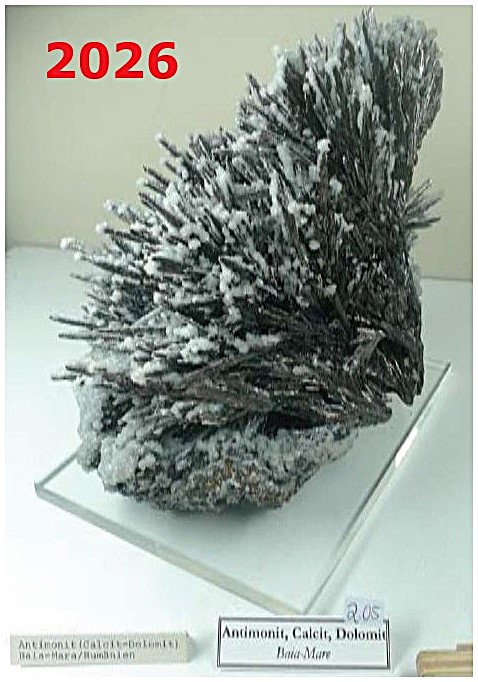 Die für die Ausstellung im Atrium vom TurmQuartier ausgewählte Antimonit-Stufe als erstes Motiv für das Neue Jahr 2026.