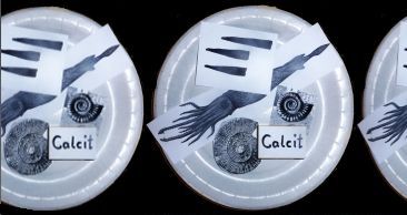 Nach der Pause arbeiten die Partner oder Kleingruppen an ihrem Erinnerungsblatt weiter. Dafür stehen dreizehn Teller bereit. Auf jedem Teller liegen grob ausgeschnittene Ammoniten-Bilder, ein Belemniten-Tier und Belemniten-Kalkkegel, außerdem eine Streichholzschachtel mit Calcit-Bröseln. Es ist jetzt 13.30 Uhr.
